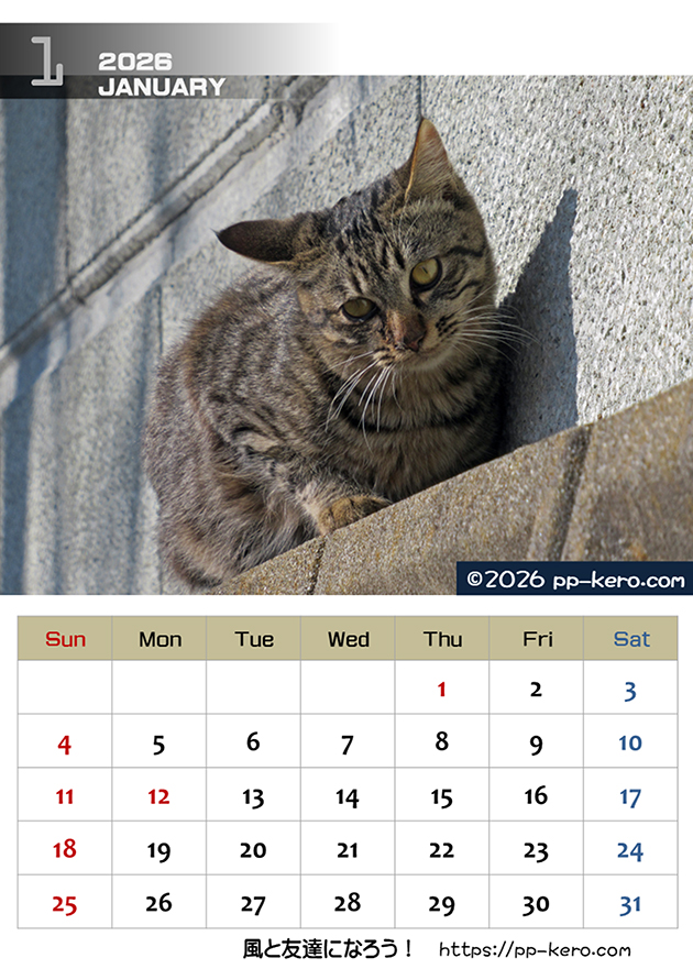 ■ オリジナル・カレンダー(ソラちゃんネコ一家) JPEG版 → January/2026(JPEG) |